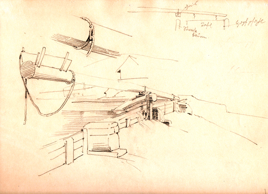 Das intakte Wehr, gezeichnet im Jahr 1900 von Heinrich Eyth