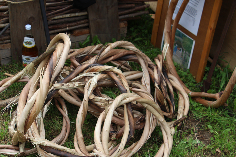 Schließlich werden die Wieden zu Kränzen zusammengebunden. Ca. 200 Wieden werden so jedes Jahr hergestellt, im Floßschopf gelagert und im Sommer erneut gewässert, damit sie wieder beweglich werden und das Floß eingebunden werden kann.