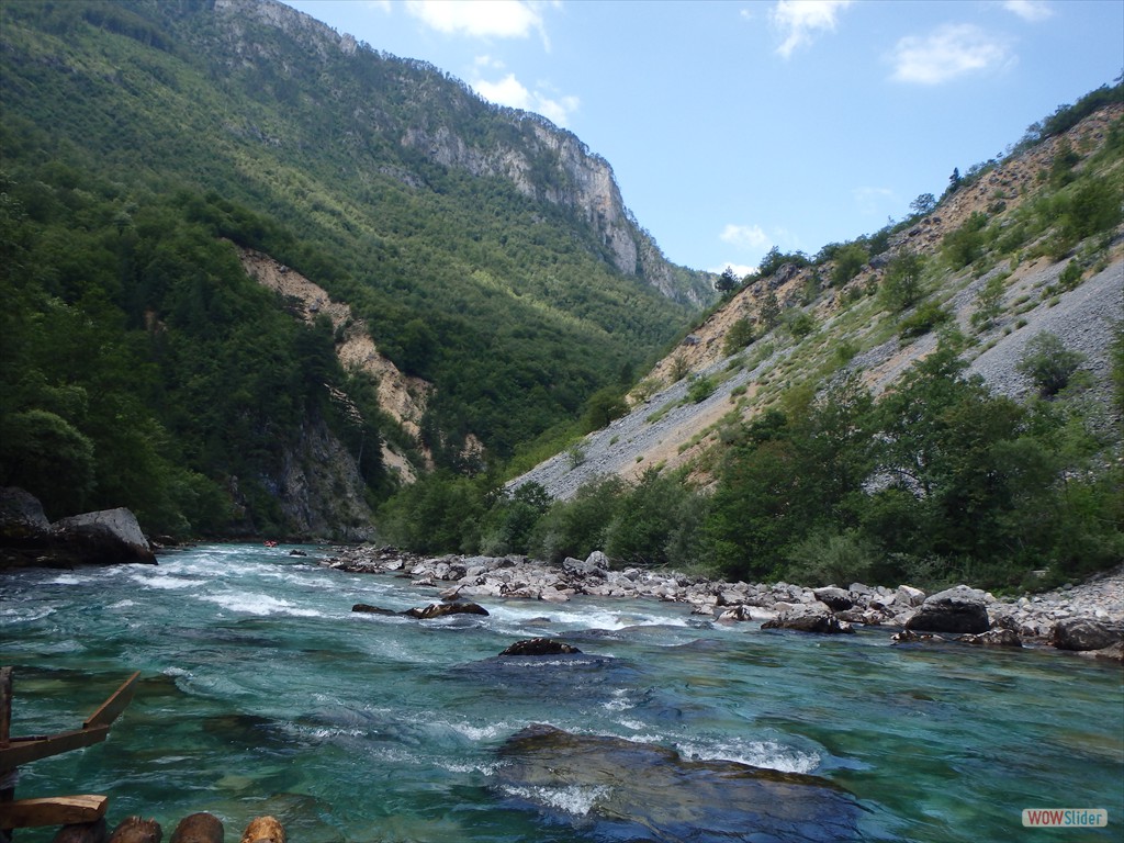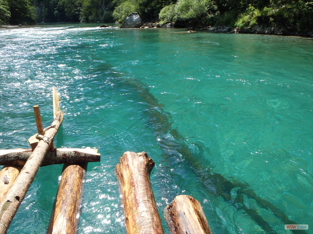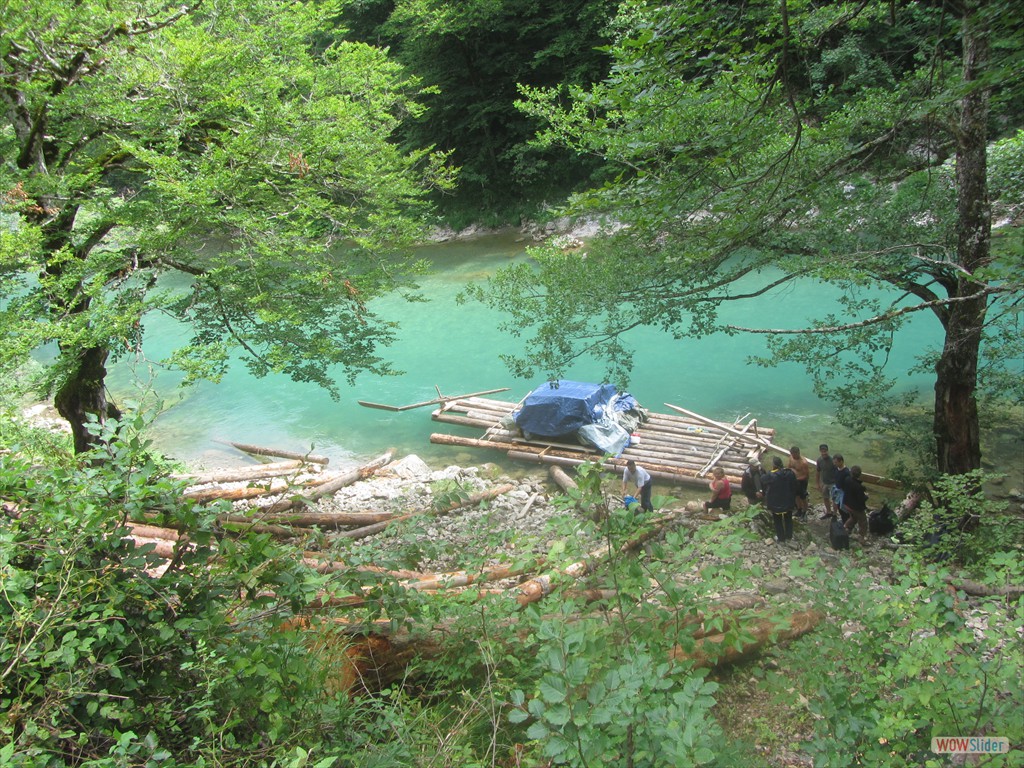 Die Familien Kipp und Brückner sind von Stuttgart nach Sarajevo geflogen und wurden vom bosnischen Flößerfreund in Empfang genommen. Ausgangspunkt zur vier Tage währenden Fahrt durch die rund 140 Kilometer lange Tara-Schlucht war die mit 1460 Metern höchstgelegene Stadt Montenegros, Zabljac. Das dort liegende elf Meter lange Floß, bestehend aus zehn Baumstämmen mit jeweils einem Ruder an jeder Stirnseite, wurde mit Proviant und Zelten beladen. »Die Schluchtwände reichen an manchen Stellen 1200 Meter in die Höhe. Die Flussufer sind unbesiedelt. Es gibt keine weitere Zufahrtsmöglichkeit. »Wir übernachtete deshalb in Zelten am Ufer«, erklärte Kipp.