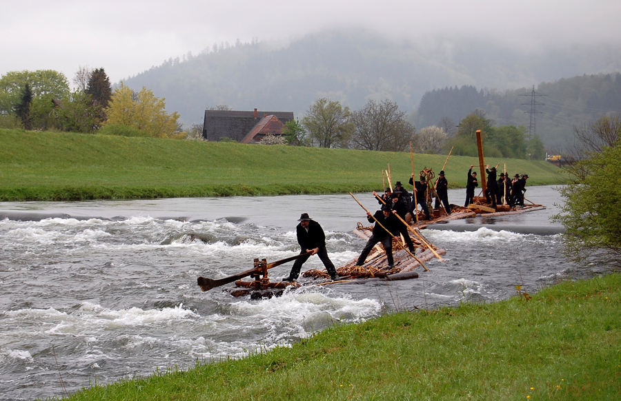 Die Schiltacher Flößer haben aufs Neue gezeigt, dass sie nicht nur „Schönwetterflößer“ sind, sondern auch mit den Unbilden des Aprilwetters gut zurechtkommen.
