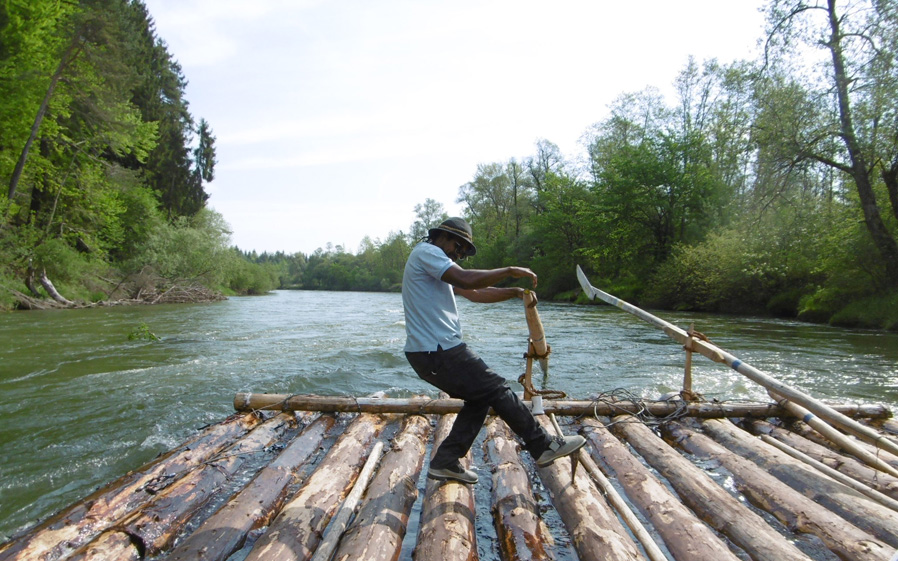 Natürlich stand auch in diesem Jahr wieder eine Floßfahrt auf dem Programm. Früh morgens wurden zwei 18 m lange Flöße von erfahrenen Floßmeistern aus Wolfratshausen zusammengebaut. Dann konnte die 26 km lange Fahrt beginnen, zunächst in der eher zahmen Loisach, die aber in die wilde Isar mündet. Den Steuerleuten wurde einiges an Kraft und Geschicklichkeit abverlangt, um das Floß sicher an den Sandbänken vorbei zu führen. Die Schiltacher ließen es sich nicht nehmen, auch einmal das Steuer zu führen um ein Gefühl für die Fahrt auf einem Gebirgsfluss zu bekommen.