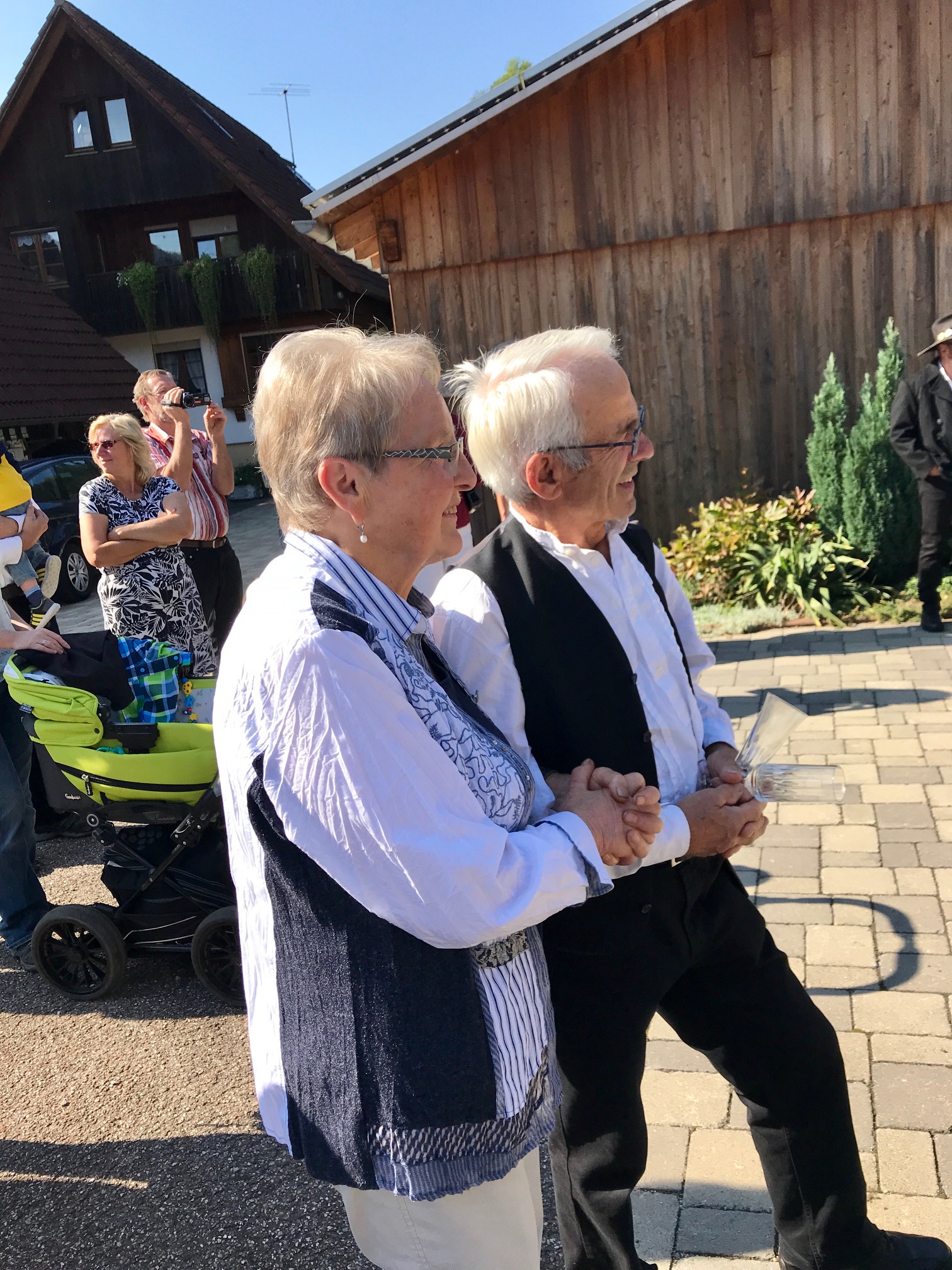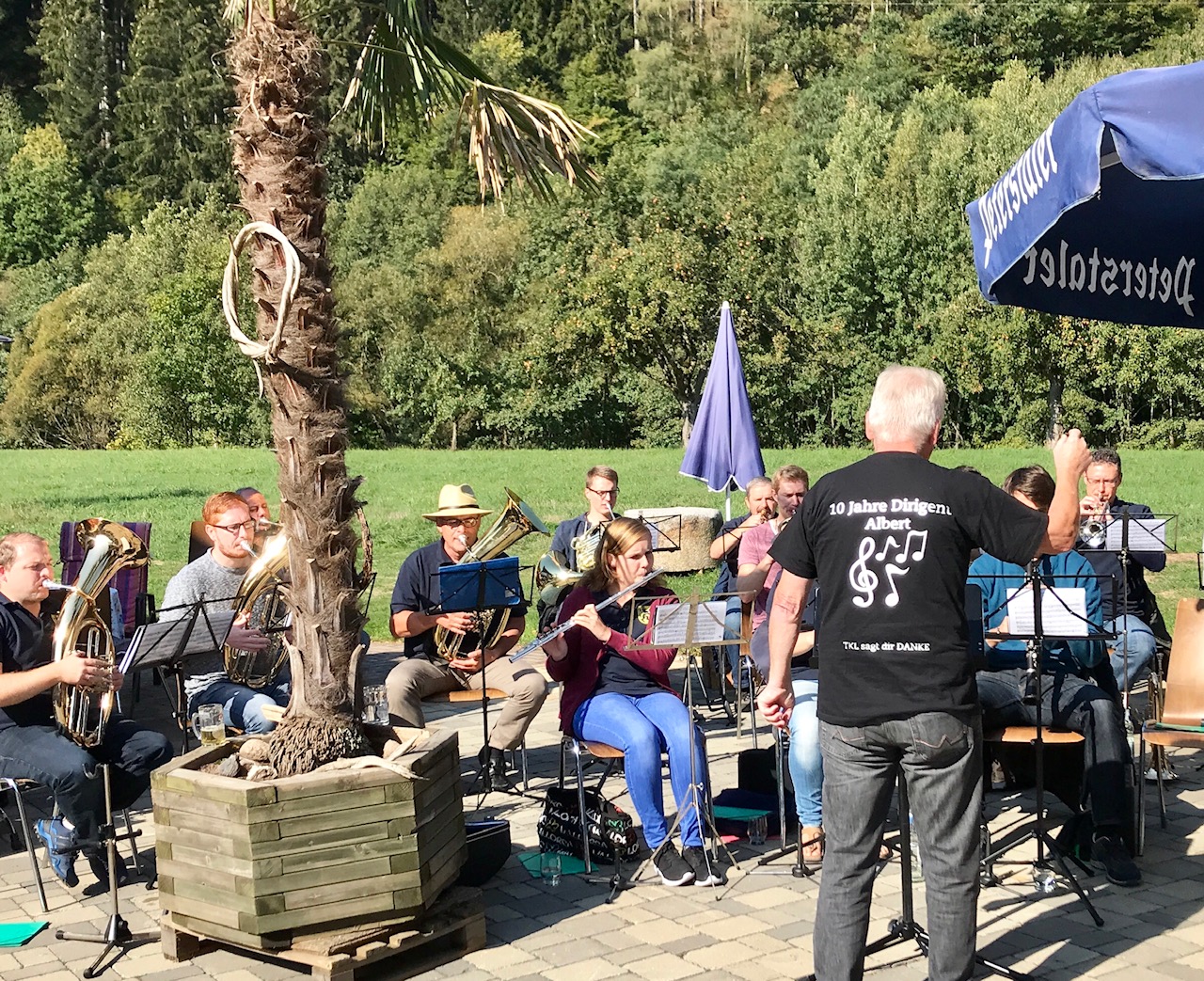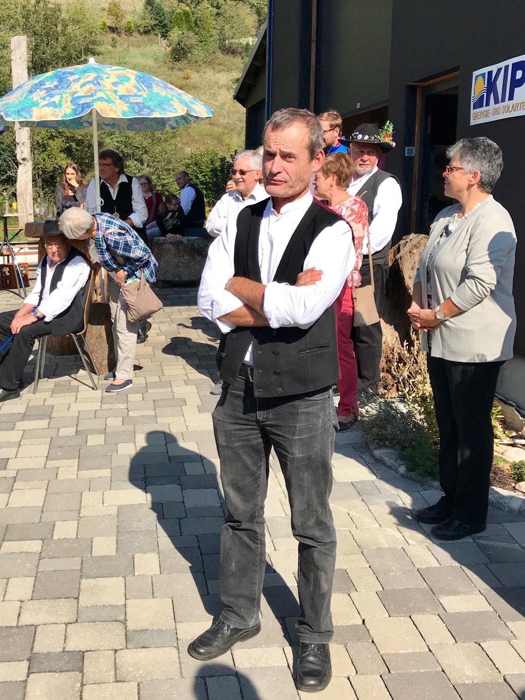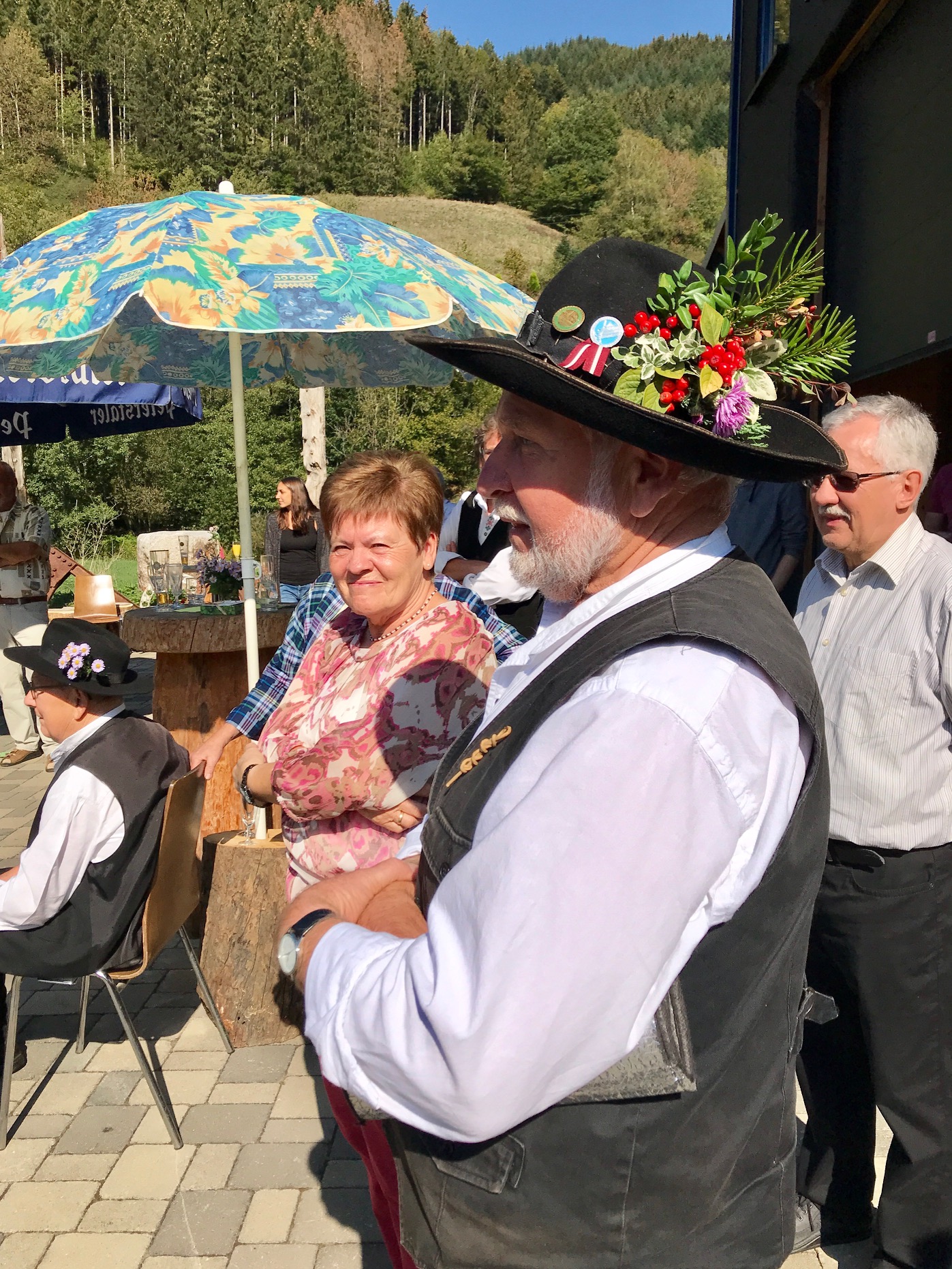Bei strahlendem Kaiserwetter und umrahmt von den Klängen der Lehengerichter Trachtenkapelle würdigte der 2. Vorsitzende der Schiltacher Flößer – Hartmut Brückner – das vielfältige Wirken des Obmanns für seine Flößer: „was wir in den letzten Jahren erreicht haben, verdanken wir in erster Linie Dir!“