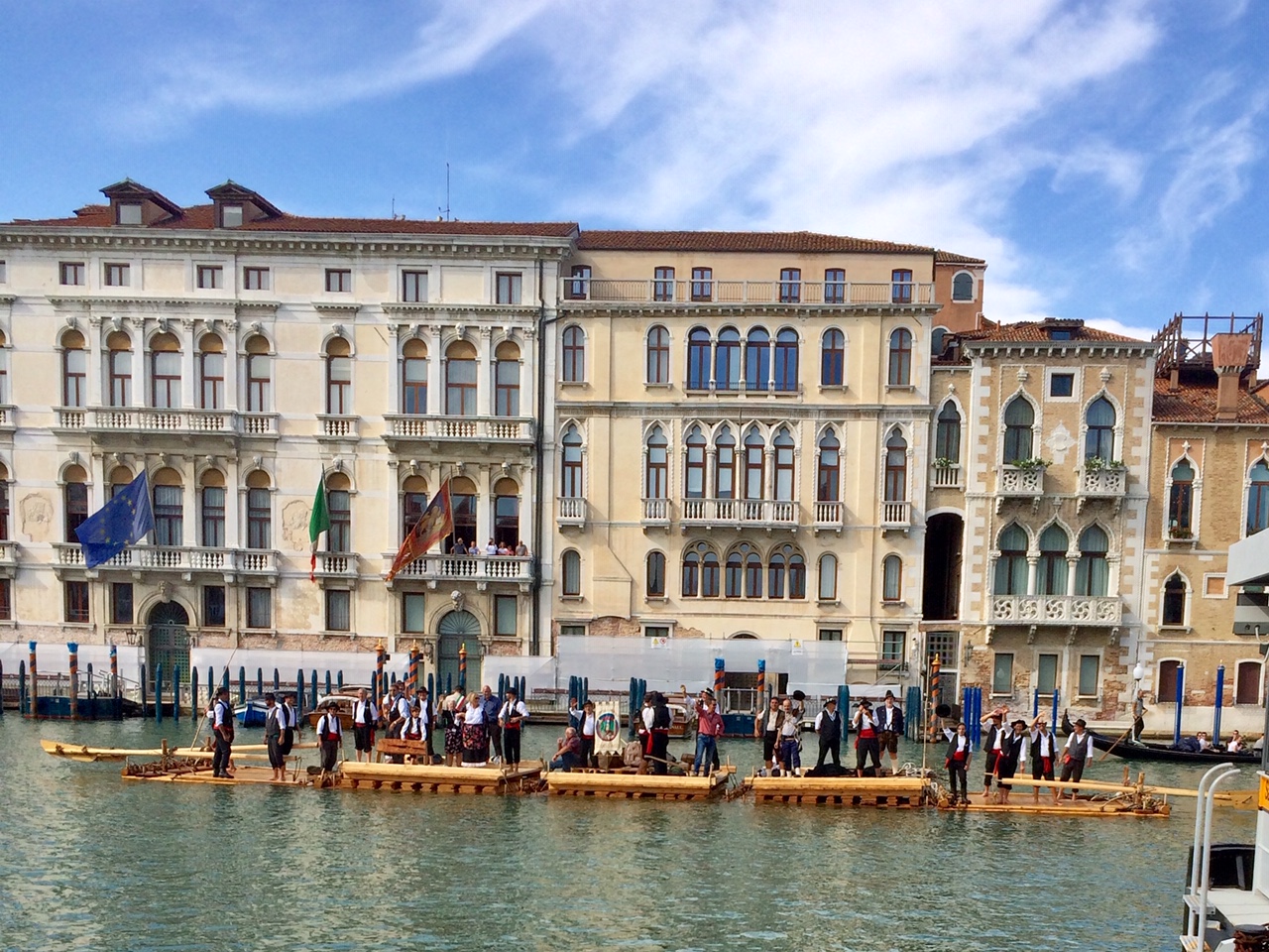 Die Begeisterung war groß, als das historische Floß von einem Schlepper in den Canale Grande gezogen wurde – erst dahinter kam dann die große Barke des Dogen mit seinen Herolden, die das Feld der historischen Ruderboote und Gondeln anführte. Für die Schiltacher Flößer war es eine große Ehre, an diesem einmaligen Ereignis mit zu wirken.