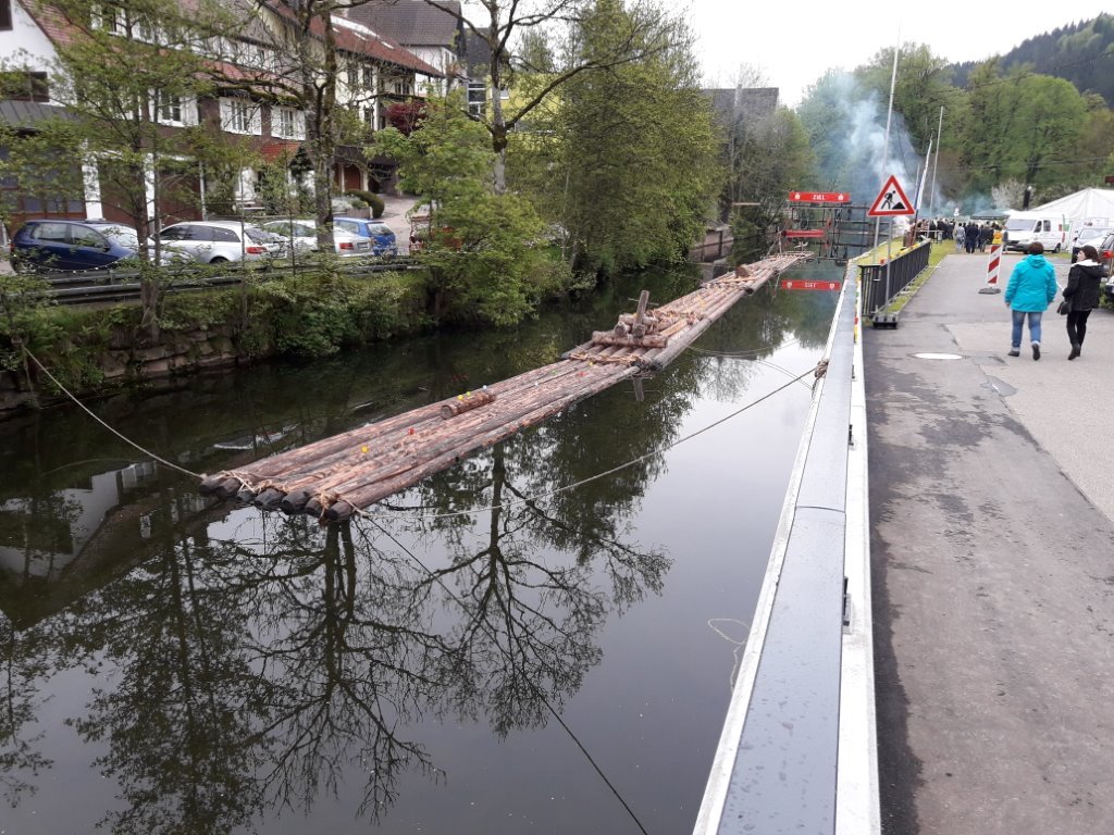 Das Floß der Schiltacher Flößer wurde am Freitag Abend nach Leinstetten gefahren und von den Schiltachern Flößern aufgebaut.