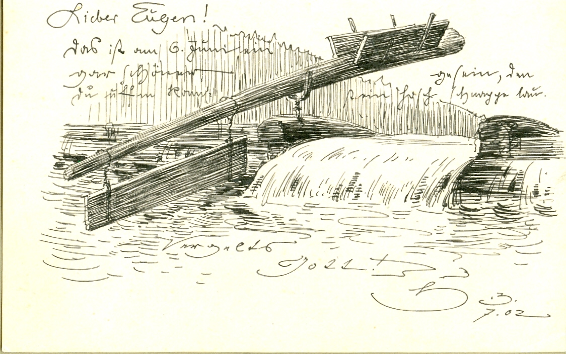 2001 hatten sie ihn an alter Stelle wiedererbaut, auf dem die Kinzig abriegelnden Wehr. Noch immer wird hier das Wasser aufgestaut und per Kanal in die „Schüttesäge“ geführt – heute zur Stromgewinnung. Früher „Kirchensäge“ genannt, verarbeitete sie mit Hilfe von Wasserrad und Gatter schon im 15. Jahrhundert Stämme zu Brettern und Dielen. Doch hatte sie einen starken Konkurrenten: die Flößerei. Nicht nur, dass diese ebenfalls auf das Flusswasser angewiesen war, das Sägewehr stellte für sie auch ein künstliches Hindernis dar.