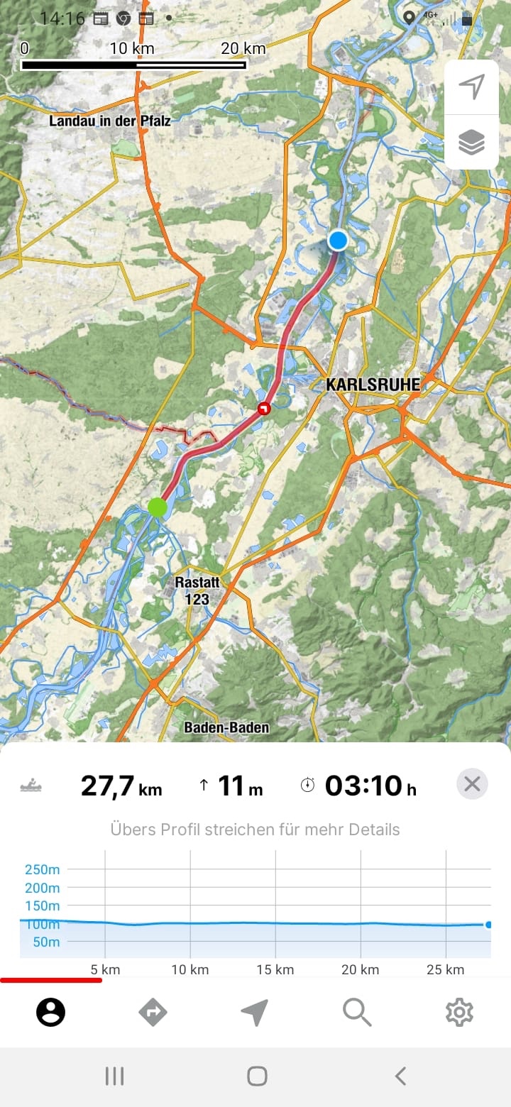 Mehr als 150 Zuschauer verfolgten den Start. Bei strahlendem Sonnenschein steuern wir an Karlsruhe vorbei nach Leopoldshafen zur Mittagspause. Nächstes Ziel ist Altlußheim bei Speyer.