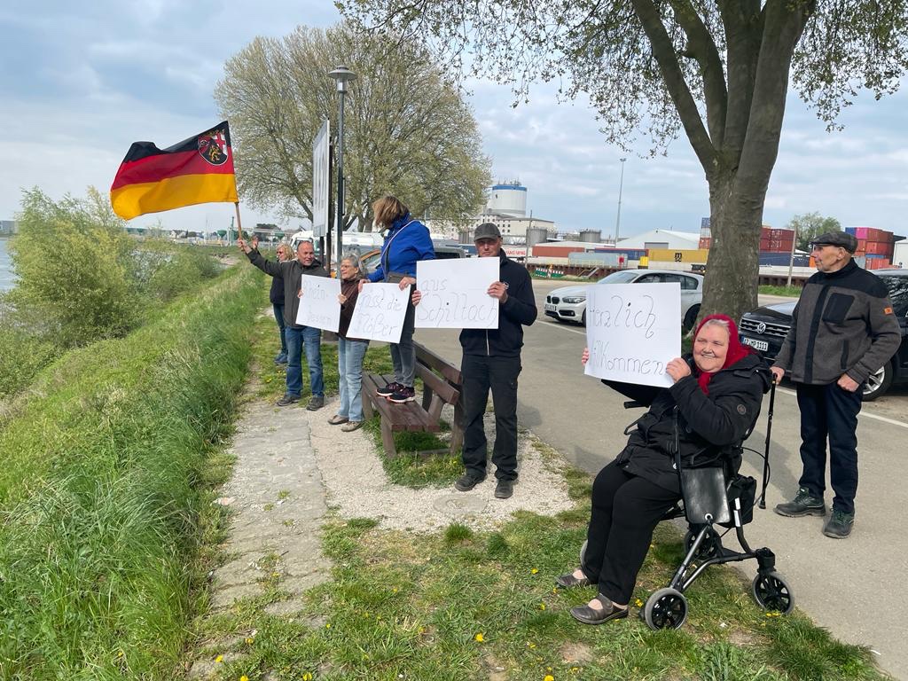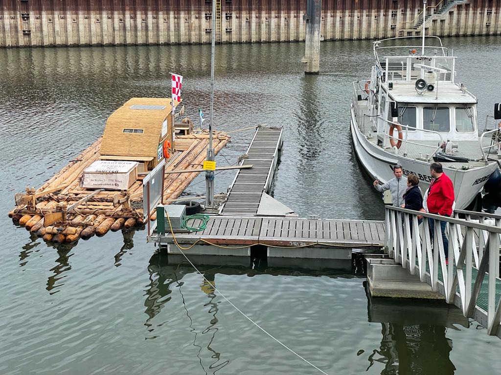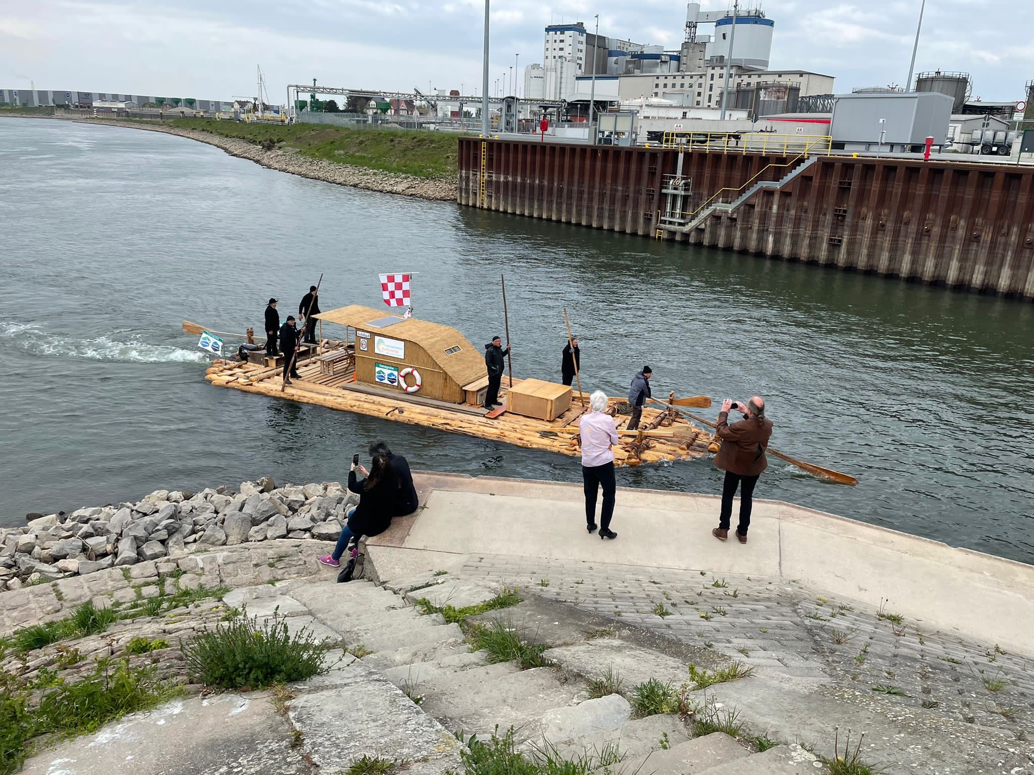 Zwischenstopp zur Mittagspause in Lambertheim – immer wieder Zuschauer, die uns am Radweg sehen oder im Radio von der Floßfahrt gehört haben.