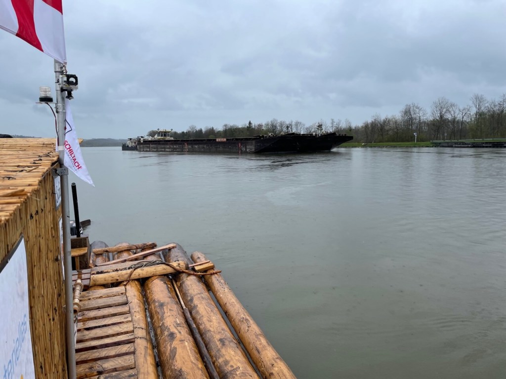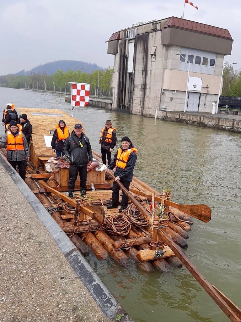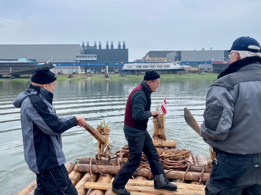 Bei der Ausfahrt aus dem Winterhafen Linz setzt Nieselregen ein. Wir nehmen Gäste aus dem Drautal auf, Josef und Helga Burgstaller von den Drautaler Flößern. Sie wollen bis Melk mit uns reisen.