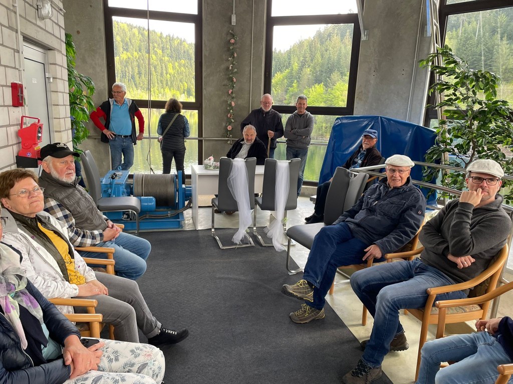 Wenn die Flößer mit Frauen und Kindern zum Jahresausflug starten, dann stimmt auch das Wetter. Erstes Ziel war der Stausee und das Wasserwerk des Zweckverbandes Wasserversorgung Kleine Kinzig. Die Führung durch den Stollen zum Entnahmeturm war für alle Teilnehmer sehr beeindruckend. Im Wasserwerk wird reines Trinkwasser aus dem Schwarzwald produziert und mehr als 32 Städte und Gemeinden werden mit dem kostbaren Lebensmittel versorgt.