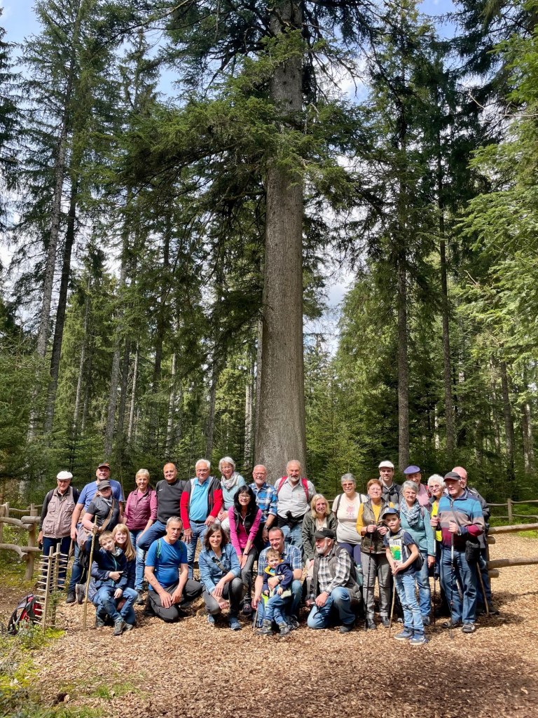 Für den Rückmarsch auf dem Wasserpfad hatte Organisator Bernd Jehle einen kleinen Imbiss mit Flößerbier eingeplant. Alle konnten sich stärken für das nächste Ziel, die Großvatertanne im Freudenstädter Stadtwald. Mit einer Höhe von 65 m und einem Umfang von 5.40 m ist sie die mächtigste Tanne im Schwarzwald.