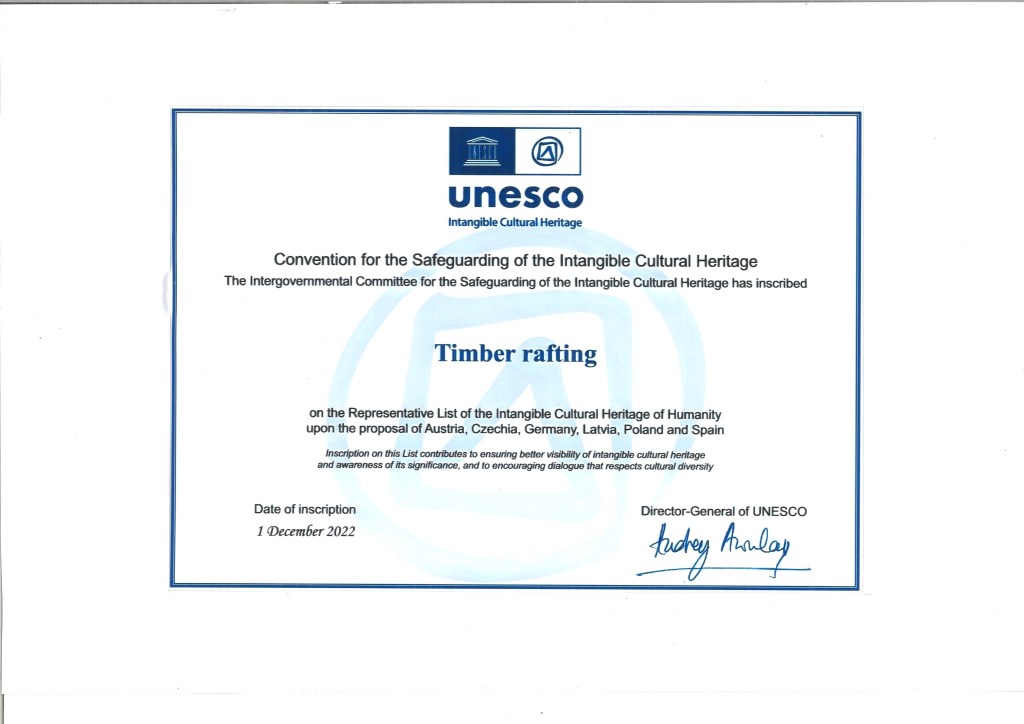 Die Aufnahme der Flößerei in die weltweite Liste der immateriellen Kulturgüter wurde schon vor längerer Zeit verkündet. Beim Flößertreffen in Reinhardshagen wurde sie mit der Verleihung der Urkunde an den Vorsitzenden der deutschen Flößervereinigung, Martin Spreng, auch offiziell vollzogen.
