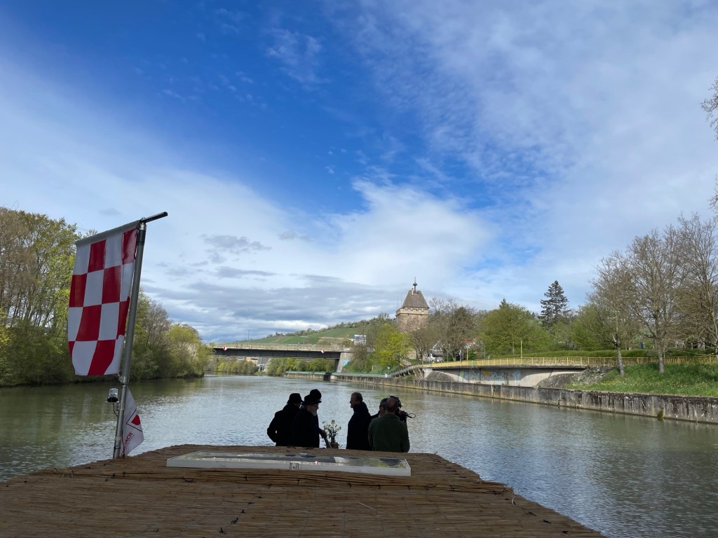Die stellvertretende Bürgermeisterin Frau Barbara Fetzer und auch der Leiter des WSA Werner Braun freuten sich über diese historische Floßfahrt die den Neckar als Flusslandschaft wieder mehr ins Gespräch bringt.