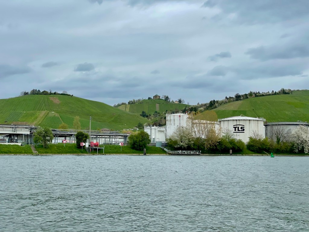 Bei Esslingen hellte sich das Wetter auf und die ersten Weinberge waren zu sehen. Überall blühten die Obstbäume – so macht Floßfahrt richtig Spaß.