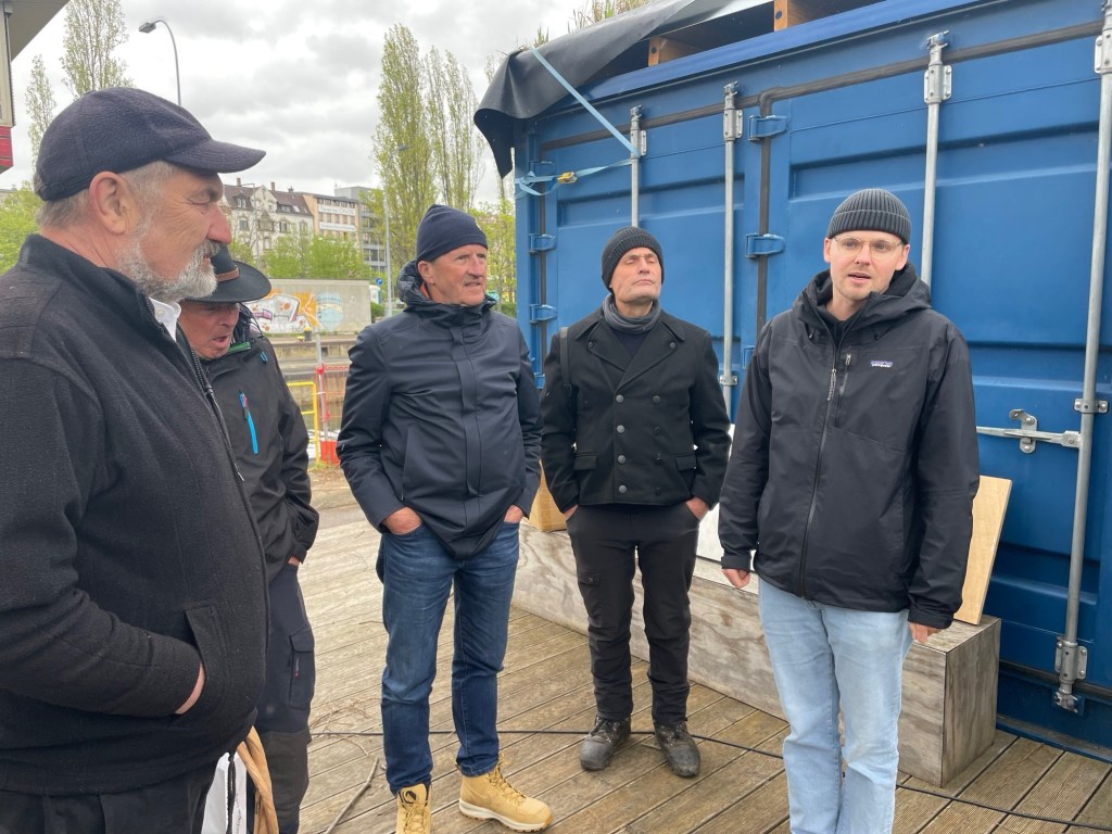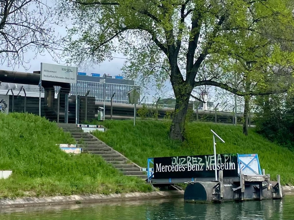 In Bad Cannstatt erreichen wir die Neckarinsel. Dort hat sich eine Gruppe von jungen Leuten gebildet die uns ihr Projekt vorstellen – Wege zu einem sauberen Neckar. Das können wir voll unterstützen.