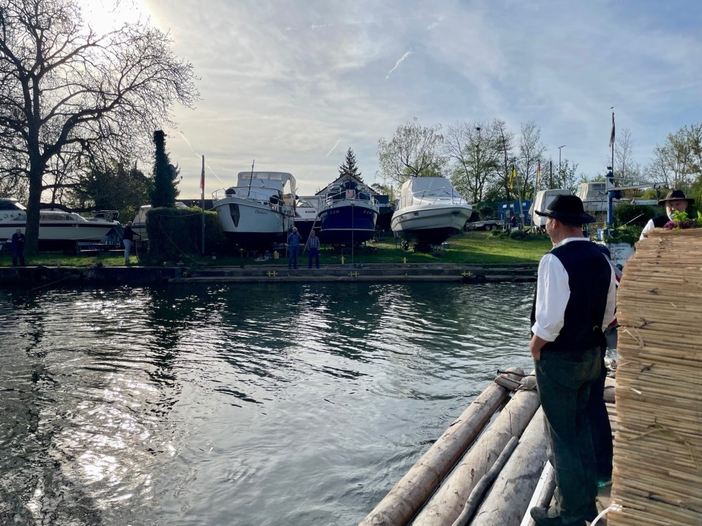 Thomas Hammann, Bäckermeister und Vorsitzender des württembergischen Motorbootclubs empfängt uns mit frischen Brötchen am Clubhaus. Da passt auch ein kühles Anleger- Bier dazu.