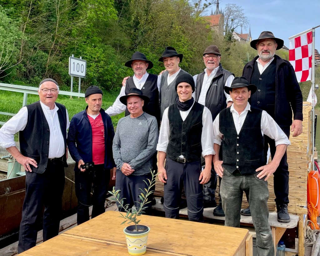 für uns ein Jubiläum: mit unserem Floß sind wir bisher 400 km auf dem Rhein, 500 km auf der Donau und jetzt 100 km auf dem Neckar gefahren = 1000 km! Das ist ein Jubelbild wert.