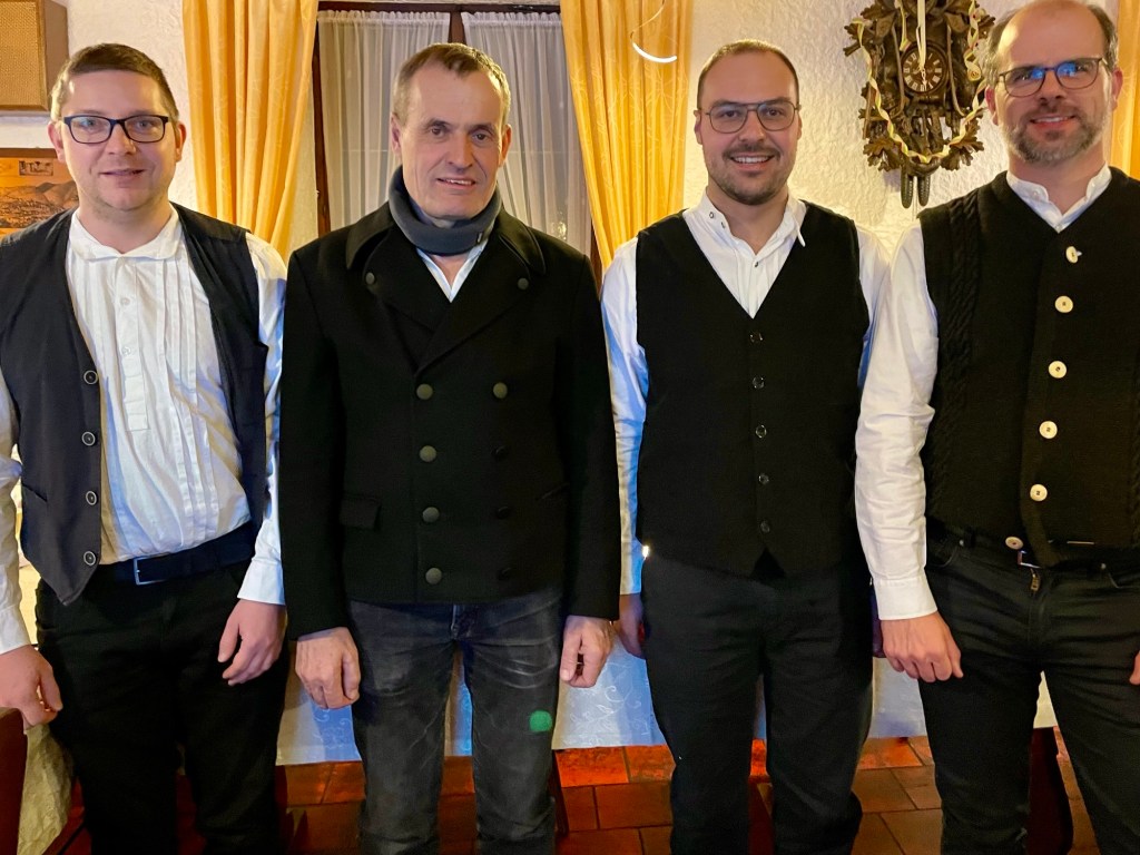 Die neu gewählten Vorstandsmitglieder mit dem 1. Vorsitzenden: Matteo Schneider, Hartmut Brückner, Luca Kreuzer, Falko Vogler (v.l.n.r.)