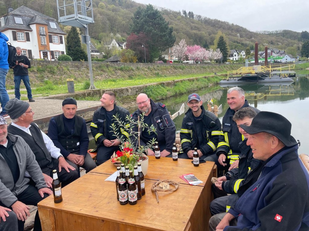 Gemeinsam mit den Feuerwehrleuten genießen wir ein Anlegerbier.